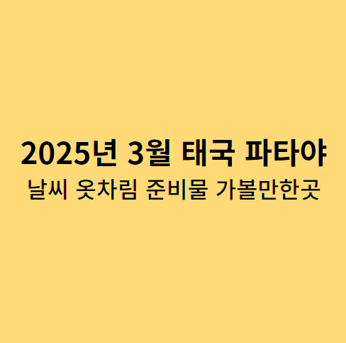 태국의 대표적인 휴양지 파타야는 아름다운 해변과 다양한 액티비티로 여행객들에게 사랑받는 곳입니다. 특히 3월은 건기 시즌으로 날씨가 좋고, 다양한 즐길 거리가 가득한 시기입니다. 이번 글에서는 2025년 3월 파타야의 날씨, 여행 옷차림, 필수 준비물, 그리고 꼭 가볼 만한 명소 세 곳을 소개해 드리겠습니다.