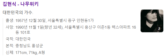가수 김현식의 프로필