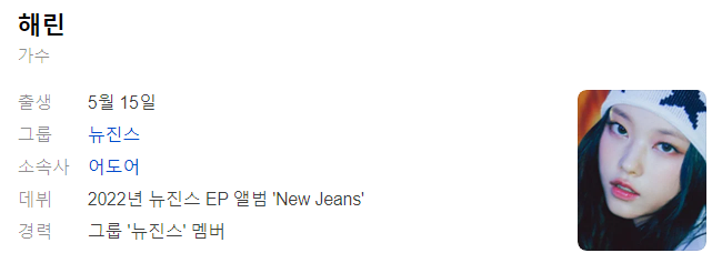 | 가수 '뉴진스' 혜인 프로필 / 나이 / 키 / 국적 / 학교 / 별명 (0) | 2024.11.15 |