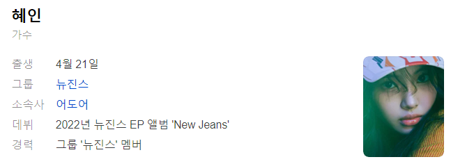 특히 뉴진스 곡의 도입부를 맡아 독특한 보컬 스타일로 듣는 이를 집중시키는 매력을 지니고 있습니다.