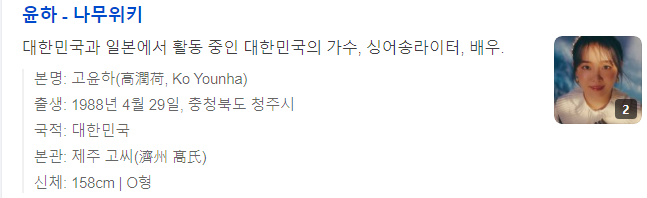 윤하는 1988년 4월 29일 대한민국 충청북도 청주시에서 태어났으며, 본명은 고윤하입니다. 제주 고씨 본관을 가진 그녀는 키 158cm에 혈액형은 O형입니다.