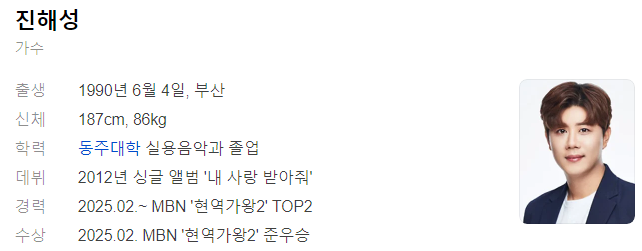 그 이후 다양한 방송 프로그램에 출연하며 트로트 가수로서의 입지를 확고히 다졌습니다. 최근에는 데뷔 30주년을 맞아 첫 전국투어 콘서트 '진해성 빅쇼'를 개최하여 팬들과 직접 소통하는 기회를 가졌습니다.