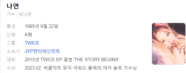 맑고 청아한 음색과 밝은 미소로 무대를 빛내는 나연은 앞으로도 트와이스의 맏언니로서, 그리고 솔로 아티스트로서 다방면에서 활약할 것입니다.