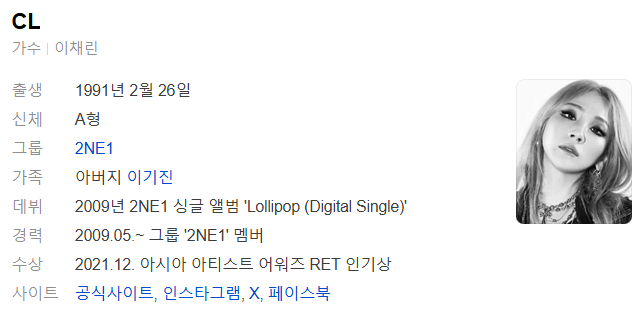 | 가수 '2ne1' 박봄 프로필 / 나이 / 키 / 성형 / 노래 / 인스타 / MBTI / 데뷔 / 유퀴즈 / 재결합 (0) | 2025.01.24 |
