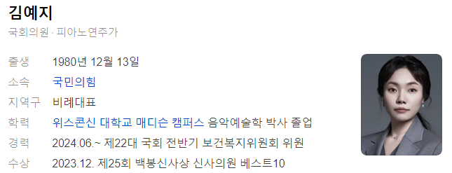| 국회의원 한지아 프로필 / 나이 / 고향 / 학력 / 아버지 / 남편 / 결혼 / 재산 / 국민의 힘 (0) | 2024.12.11 |