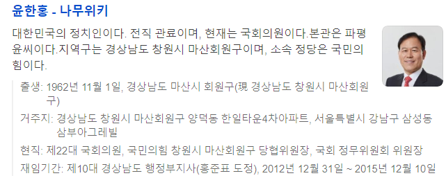 국회의원 윤한홍 프로필