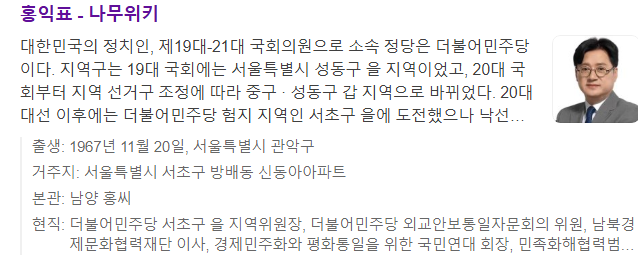홍익표 의원은 1967년 11월 20일 서울특별시 관악구에서 태어났습니다. 본관은 남양 홍씨이며, 현재 나이는 57세입니다.