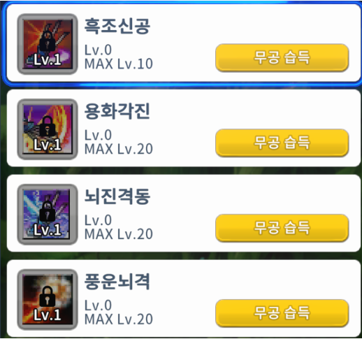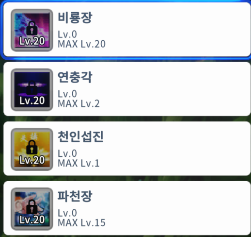 | 암기 | 원거리에서 적을 제압할 수 있으며, 강력한 데미지를 자랑합니다. | 정파 1티어 / 사파 1.5티어 |