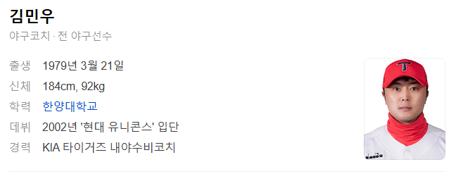 김민우 코치는 경기도 안산시 출신으로 관산초, 중앙중, 부천고, 한양대를 거쳐 현대 유니콘스에 입단하며 프로 생활을 시작했습니다.