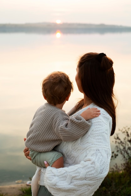 가족과 함께 있는 어머니