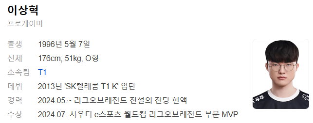 페이커 프로필