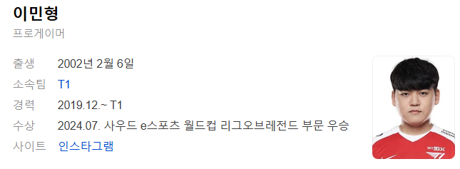 | 리그 오브 레전드 프로게이머 T1 페이커 (이상혁) / 프로필 / 나이 / 키 / 경력 / 연봉 / 자산 / 롤드컵 우승 (0) | 2024.11.03 |