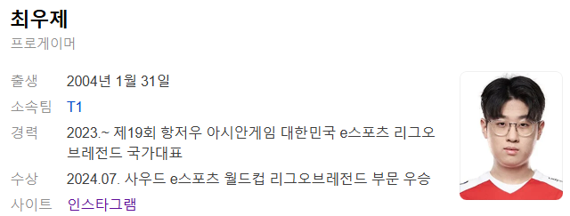 | 리그 오브 레전드 프로게이머 T1 오너 프로필 / 연봉 / 커리어 / 가족 / 롤드컵 우승 (0) | 2024.11.04 |