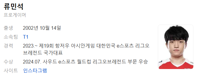 | 리그 오브 레전드 프로게이머 T1 오너 프로필 / 연봉 / 커리어 / 가족 / 롤드컵 우승 (0) | 2024.11.04 |