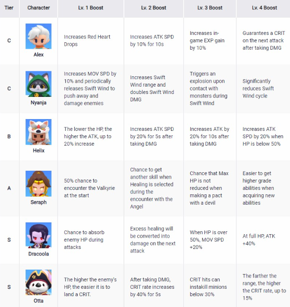 - 요정 – 서포터 역할로 추가 피해와 회복을 제공해 생존률을 크게 높여줍니다.