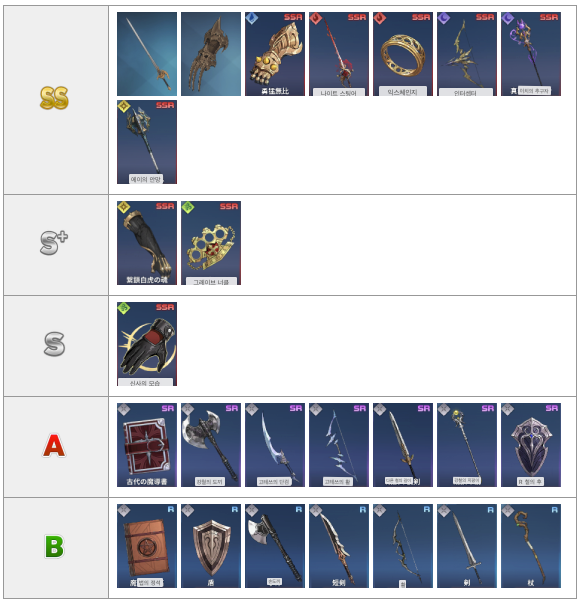 | 2티어 | 악마왕의 장검, 볼칸의 분노 |