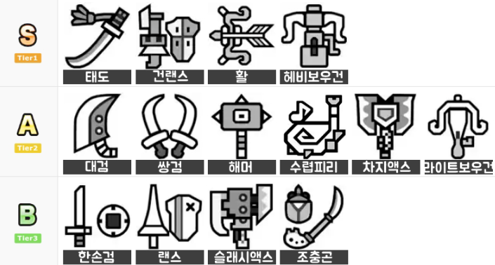 B티어 무기로는 한손검, 랜스, 슬래시액스, 조충곤이 선정되었습니다. 현재 기준으로는 상대적으로 낮은 평가를 받고 있으나, 향후 밸런스 패치를 통해 상위 티어로 올라설 가능성이 있습니다. 각 무기마다 고유한 특성과 매력이 있으므로, 자신의 플레이 스타일에 잘 맞는다면 충분히 좋은 성과를 낼 수 있습니다.