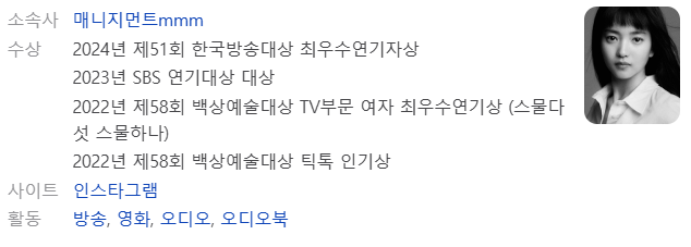 | 배우 조윤희 알아보기 / 프로필 / 나이 / 키 / 작품 활동 / 이혼 / 가족 (0) | 2024.11.06 |