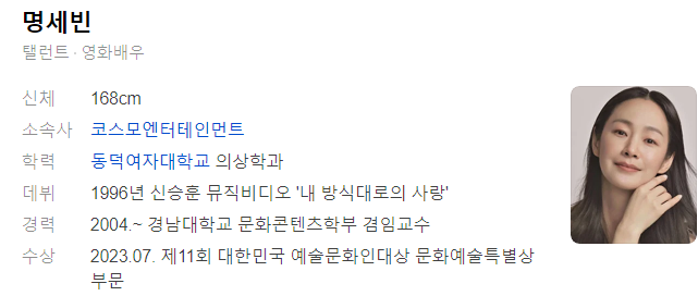 명세빈의 삶은 연기와 개인적인 성장을 통해 끊임없이 변화를 맞이하며, 그녀만의 독특한 매력으로 대중들에게 큰 사랑을 받고 있습니다. 앞으로도 그녀의 활발한 활동과 새로운 작품에서의 활약을 기대합니다.