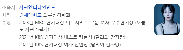 그녀가 출연한 작품으로는 '여자들은 왜 화를 내는 걸까', '널 만질거야', '추리의 여왕 시즌2', '제3의 매력', '로맨스는 별책부록', '사이코지만 괜찮아', '스위트홈', '악마판사', '셀러브리티', '스위트홈 시즌2', '오징어게임 시즌2', '나인퍼즐' 등이 있습니다.