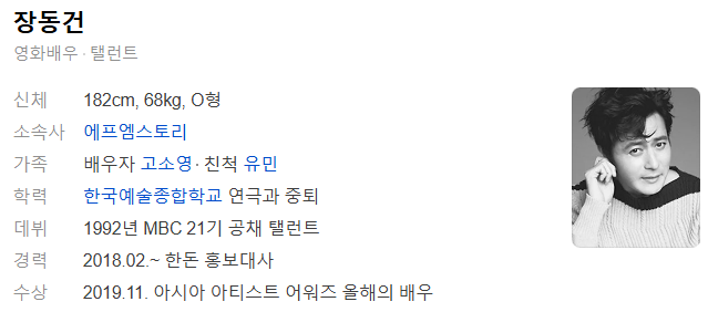 배우 장동건 학력과 가족 배경