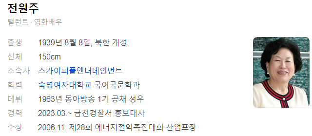 배우 전원주의 프로필