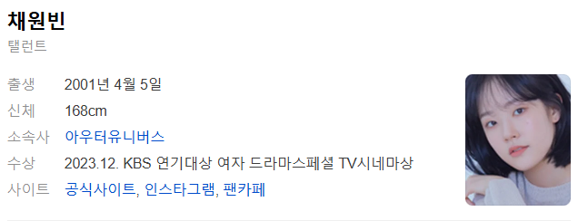 채원빈은 연기 외에도 다양한 매력을 지닌 배우로 알려져 있습니다.