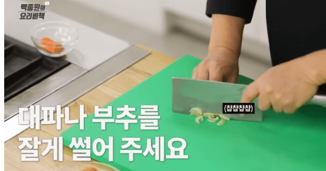 백종원 계란말이의 핵심 중 하나는 채소 손질입니다. 당근과 대파는 최대한 작고 고르게 다져야 계란물 속에서 고루 섞여 맛과 식감의 조화를 이룹니다. 당근은 익었을 때도 아삭함을 유지하고, 대파는 달걀 특유의 고소한 향을 더욱 풍부하게 만들어줍니다.