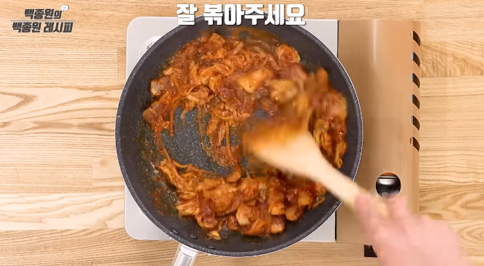 양념에 삼겹살이 잘 어우러지면 김치를 넣고 충분히 볶아줍니다. 김치가 투명해지기 시작하면 채 썬 양파와 당근을 넣어 볶아 채소의 단맛을 더합니다. 이 과정을 통해 백종원 두부김치 특유의 깊고 진한 맛을 완성할 수 있습니다.