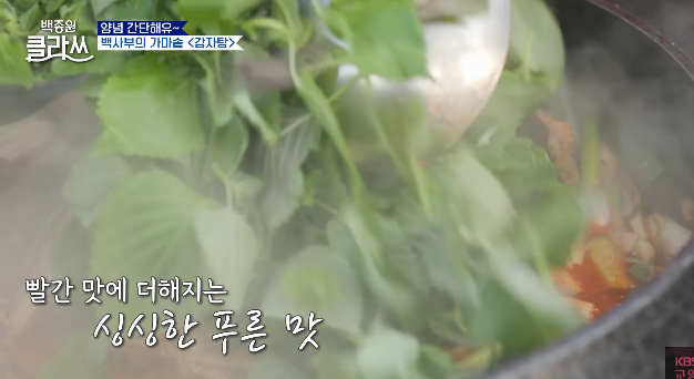 마지막으로 깻잎을 넣고 5분 정도 더 끓이면 백종원 등뼈감자탕이 완성됩니다. 깻잎의 향이 더해지면 식욕을 더욱 자극하는 풍미를 느낄 수 있습니다.