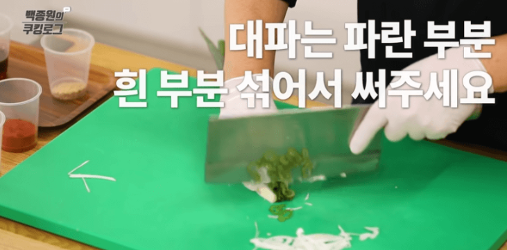 2. 대파도 이물질 없이 잘 씻은 뒤 송송 썰어주세요. 양이 많은 만큼 다지듯 써는 것이 좋습니다.