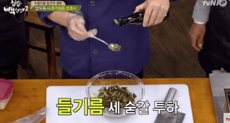 백종원 시래기나물볶음에는 들기름을 사용하는 것이 고소한 맛을 더욱 살려줍니다. 하지만 취향에 따라 참기름을 약간 섞어 사용해도 무방합니다.