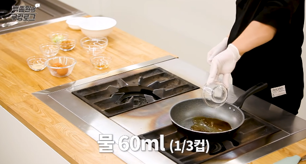 양파덮밥의 감칠맛을 살려주는 핵심은 바로 양념장입니다. 물, 설탕, 맛술, 간장을 미리 섞어 준비해 주세요. 각각의 비율은 정확하게 맞춰야 백종원 스타일 그대로의 맛을 재현할 수 있습니다. 만약 1인분만 준비할 계획이라면 양념 재료를 절반으로 줄여 사용하면 좋습니다.