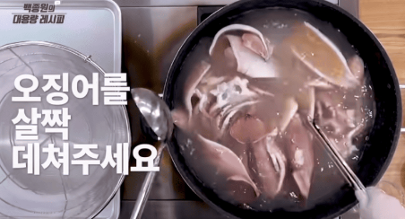 백종원 오징어초무침에서 가장 중요한 과정 중 하나가 오징어 데치기입니다. 오징어는 너무 오래 데치면 질겨지고, 너무 짧으면 비린 맛이 남을 수 있습니다.