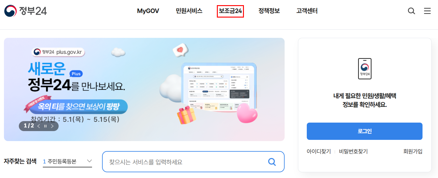 보조금24 이용 방법