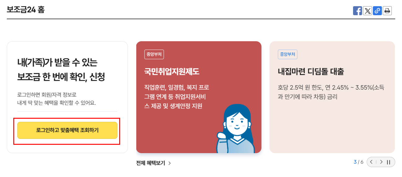 - 맞춤형 혜택 확인: 개인/가구 특성을 선택하여 더욱 정확한 맞춤형 혜택을 확인할 수 있습니다.