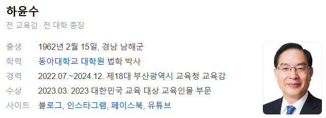 부산광역시 교육감 하윤수 프로필 / 나이 / 고향 / 학력 / 보수 성향 / 역할 / 논란