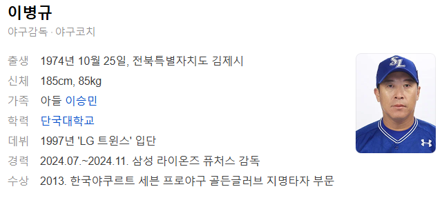 | 기아 타이거즈 2025시즌 김주찬, 김민우 코치 영입 / 코치 프로필 / 경력 / 기록 (0) | 2024.11.03 |