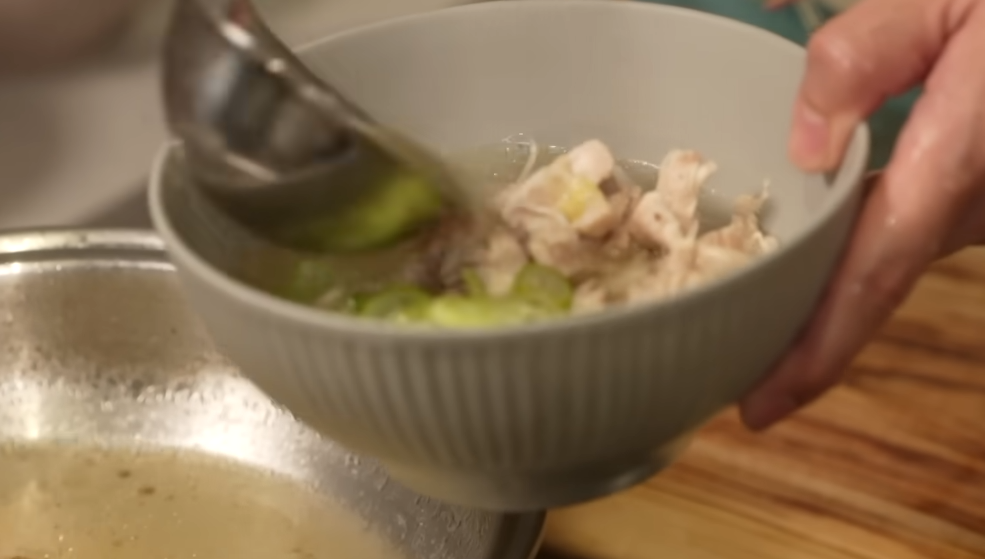 국물을 끓인 후 잠시 식히면 위에 기름층이 뜹니다. 이를 국자로 살살 떠내거나, 냉장 보관 후 굳은 기름을 제거해 주면 담백한 성시경 닭곰탕을 완성할 수 있습니다.