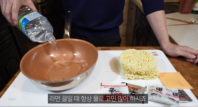 맛있는 신새라면을 만들기 위해 먼저 필요한 재료들을 준비합니다. 기본적인 라면 재료에 더해 치즈와 계란, 순후추를 더함으로써 훨씬 풍부하고 매력적인 맛을 느낄 수 있습니다.