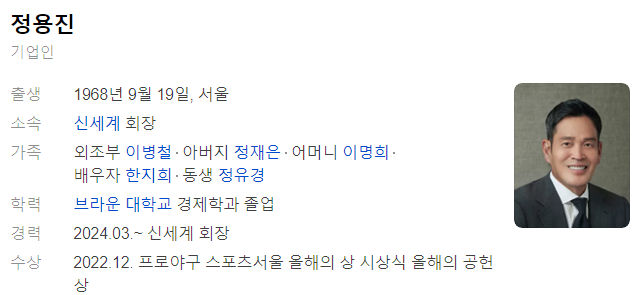 정용진 회장은 대한민국 유통업계를 선도하는 신세계그룹의 회장이자 SSG 랜더스의 구단주로 활동하며 많은 이들의 관심과 존경을 받고 있는 인물입니다. 그의 삶과 경영 철학, 그리고 사회적 기여는 많은 사람들에게 영감을 주고 있으며, 오늘날 한국 유통업의 미래를 이끌어가는 핵심적인 인물로 평가받고 있습니다.