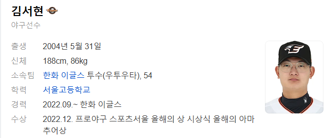한화 이글스의 새로운 유망주, 투수 김서현이 최근 프로야구 데뷔전을 성공적으로 치르며 팬들과 전문가들로부터 주목받고 있습니다. 김서현 선수는 젊은 나이에도 불구하고 강력한 직구와 안정적인 제구력으로 많은 이들의 기대를 받고 있는데요. 이번 글에서는 김서현 선수의 프로필과 그가 걸어온 길을 자세히 살펴보고, 데뷔전 활약과 향후 가능성에 대해 알아보겠습니다.
