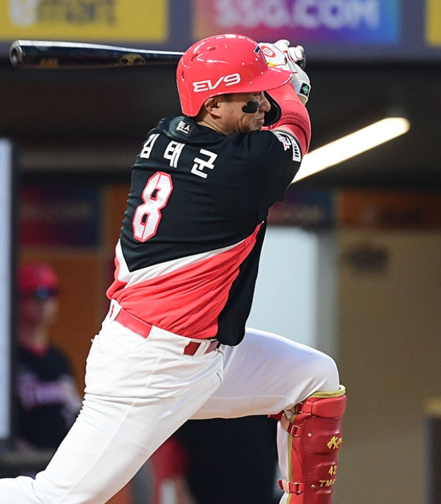 그러나 주력 부족으로 인해 병살타가 많이 나오며, 팬들 사이에서 '군살타'라는 별명으로 불리기도 합니다. 이 별명은 그의 느린 주력과 타격 스타일에서 비롯된 것으로, 김태군만의 아이러니한 타격 스타일을 반영합니다. 만루 상황에서는 강한 타격으로 긍정적인 결과를 이끌어내며, 2024년 한국 시리즈에서 첫 만루 홈런을 기록한 바 있습니다.