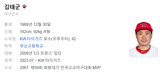 김태군 선수는 1989년 부산에서 태어나 KBO 리그의 KIA 타이거즈에서 포수로 활동하고 있는 선수입니다. 그의 긴 프로 경력은 여러 팀을 거치며 다채로운 경험을 쌓아온 역사와 더불어 그의 뛰어난 수비력과 리더십, 그리고 팀에 대한 헌신을 잘 보여줍니다. 김태군은 그가 이루어낸 포수로서의 기량뿐 아니라, 팬과 팀 동료들 사이에서도 신뢰를 받는 인물로 자리매김하고 있습니다.
