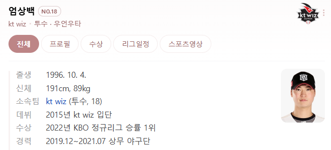엄상백의 프로필과 연봉