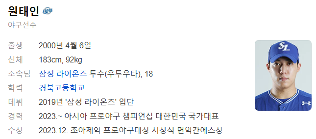 삼성라이온즈 원태인 공식사이트