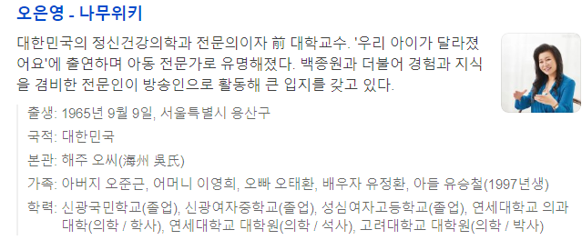 오은영 박사 프로필 / 나이 / 고향 / 학력 / 책 / 프로그램 / 인스타 / 남편