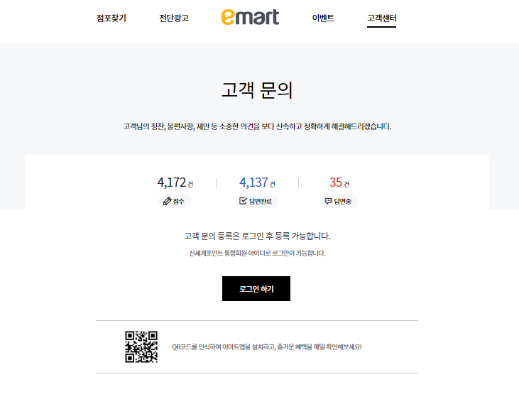 이마트는 전화 상담이 어려운 고객들을 위해 카카오톡 채널과 홈페이지 내 온라인 문의 시스템을 운영하고 있습니다. 이를 통해 고객들은 간편하게 문의를 남기고, 빠른 답변을 받을 수 있습니다.