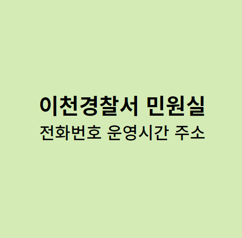 이천경찰서 민원실은 평일에 운영되며, 주말과 공휴일에는 휴무입니다. 방문 전 업무시간을 확인하여 불편함이 없도록 하시기 바랍니다.