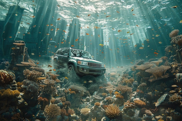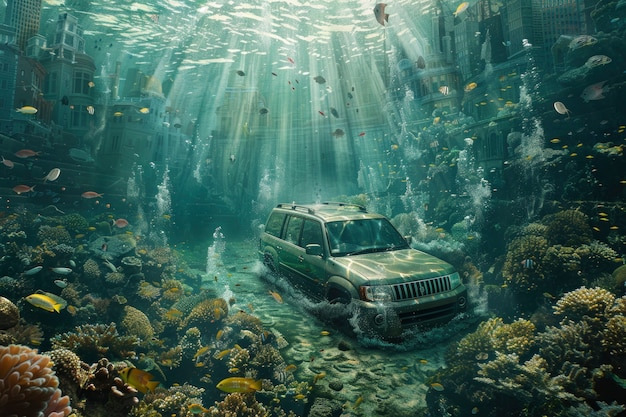차가 완전히 가라앉지 않고 물 위를 떠다니는 꿈은 아직 해결되지 않은 문제가 있지만, 충분히 극복할 수 있는 상황임을 나타냅니다.